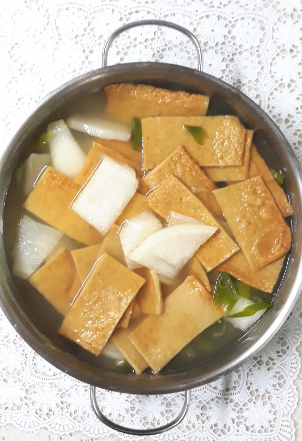 Selagi lobak direbus, mari siapkan eomuk dan daun bawang. Potong eomuk persegi menjadi ukuran sekali suap, mungkin 2-3 potong per lembar. Iris serong daun bawang; ini akan menambah aroma harum pada kuah. Jangan ragu menambahkan cabai jika Anda suka sedikit pedas.