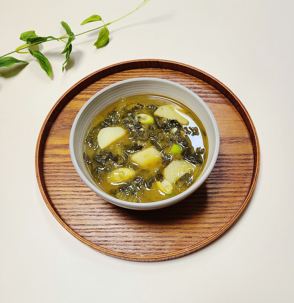 Ini adalah sup lezat dan lembut yang terbuat dari daun lobak kering (mucheong siraegi) dan pasta kedelai. Sup ini memiliki kaldu yang dalam dan gurih, sempurna untuk menghangatkan tubuh di hari yang dingin, dan merupakan tambahan yang luar biasa untuk hidangan rumahan apa pun. Kaya serat dari sayuran dan umami dari doenjang, sup ini adalah hidangan yang bergizi.