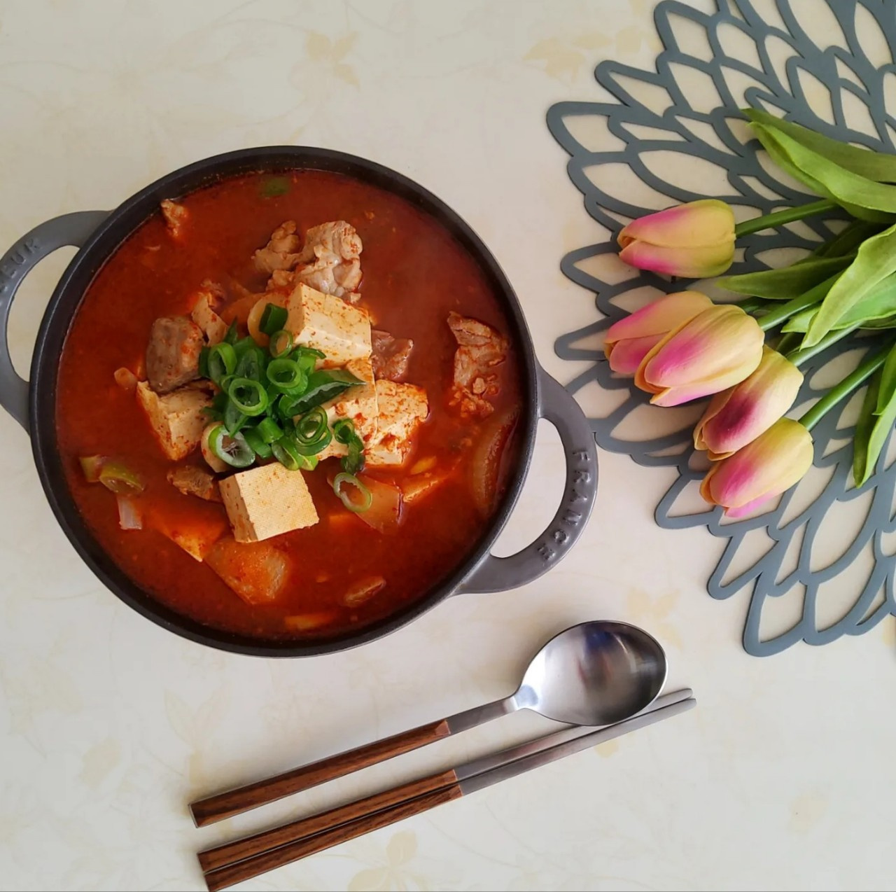 Kami membagikan resep unik keluarga kami untuk Sup Tahu Gochujang, dibuat dengan gochujang buatan sendiri yang rasanya bervariasi di setiap rumah. Sup ini menawarkan keseimbangan sempurna antara rasa pedas dan cita rasa yang dalam, menjadikannya teman nasi yang tak tertahankan, terutama saat nafsu makan sedang menurun.