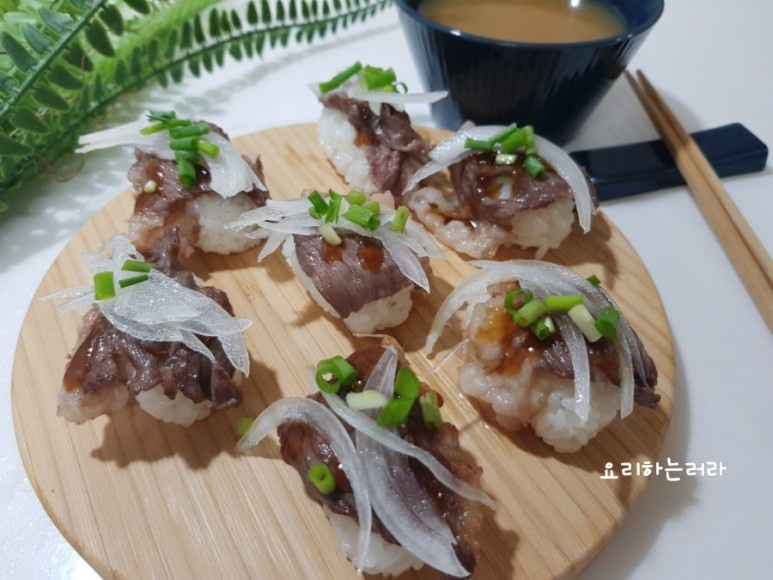 Sushi buatan sendiri yang terbuat dari nasi berbumbu sempurna dan irisan brisket sapi berkualitas tinggi adalah hidangan yang luar biasa lezat! Ternyata cukup mudah dibuat, jadi cobalah resep ini. Keluarga Anda pasti akan menyukainya!