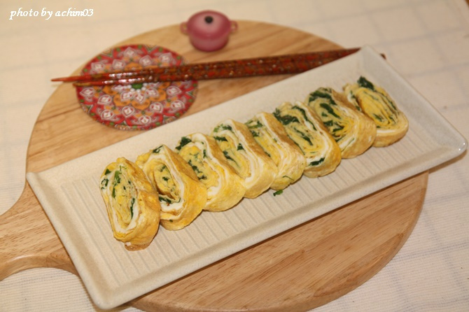 Panaskan wajan telur dadar atau wajan anti lengket dengan api kecil. Lumuri wajan tipis-tipis dengan minyak menggunakan tisu dapur. Ini akan mencegah telur menempel dan memastikan proses memasak berjalan lancar. Tuangkan sekitar sepertiga adonan telur ke dalam wajan. Letakkan daun kucai cincang dengan hati-hati di sepanjang pinggir wajan. Setelah telur mulai setengah matang, gulung perlahan seperti membuat sushi roll. Ulangi proses ini 2-3 kali, sambil terus membentuk telur dadar.