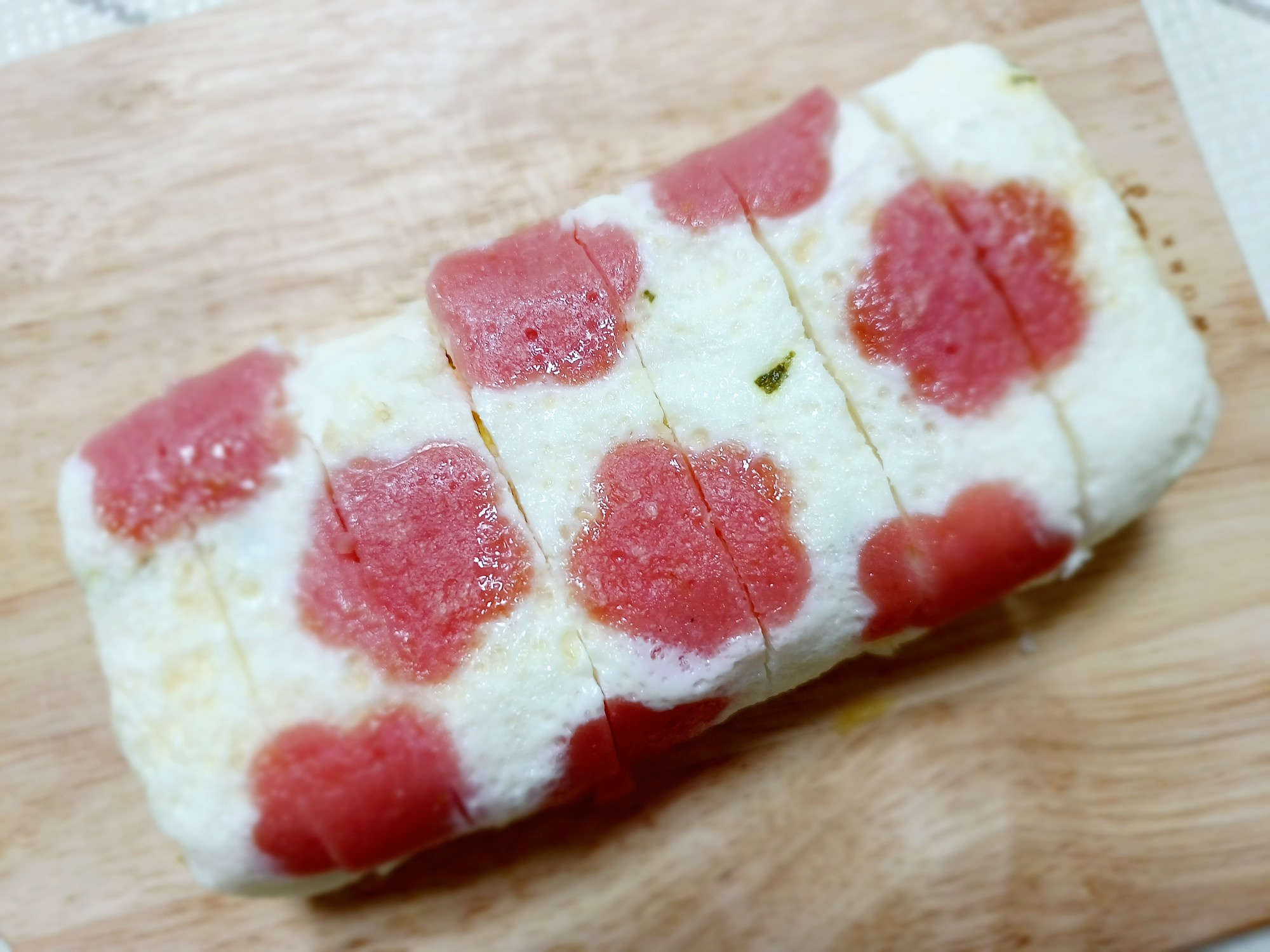 Menggunakan pemotong kue kecil berbentuk bunga atau pisau, potong dengan hati-hati bentuk bunga dari irisan sosis merah muda yang tipis. Jika sosis tersisa, Anda bisa mencincangnya halus dan mencampurnya ke dalam adonan telur untuk menambah rasa dan tekstur.