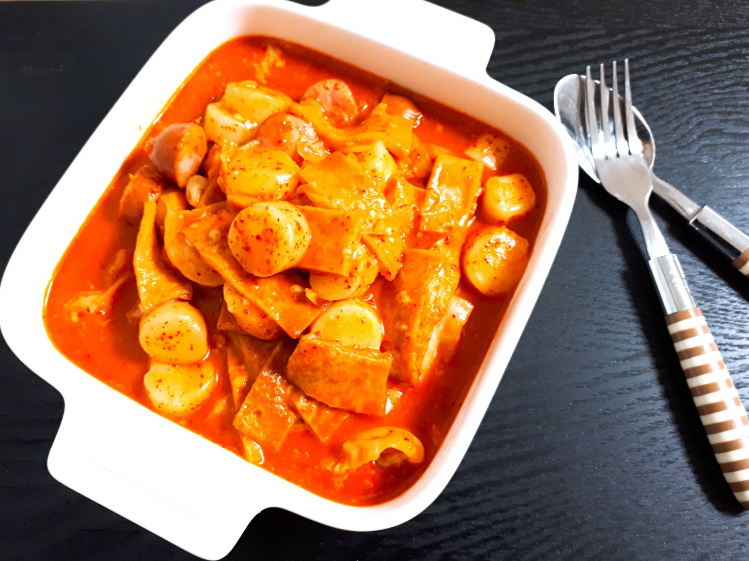 Voila! Tteokbokki buatan sendiri, camilan favorit nasional dengan keseimbangan sempurna rasa manis, pedas, dan asin, siap dinikmati! Kuahnya yang sedikit kental dan gurih sangat cocok dinikmati bersama tteok dan bahan lainnya. Untuk penutup yang tak terlupakan, jangan lupa campurkan nasi, taburan rumput laut kering, dan minyak wijen ke dalam sisa saus untuk membuat nasi goreng yang lezat! Selamat menikmati!