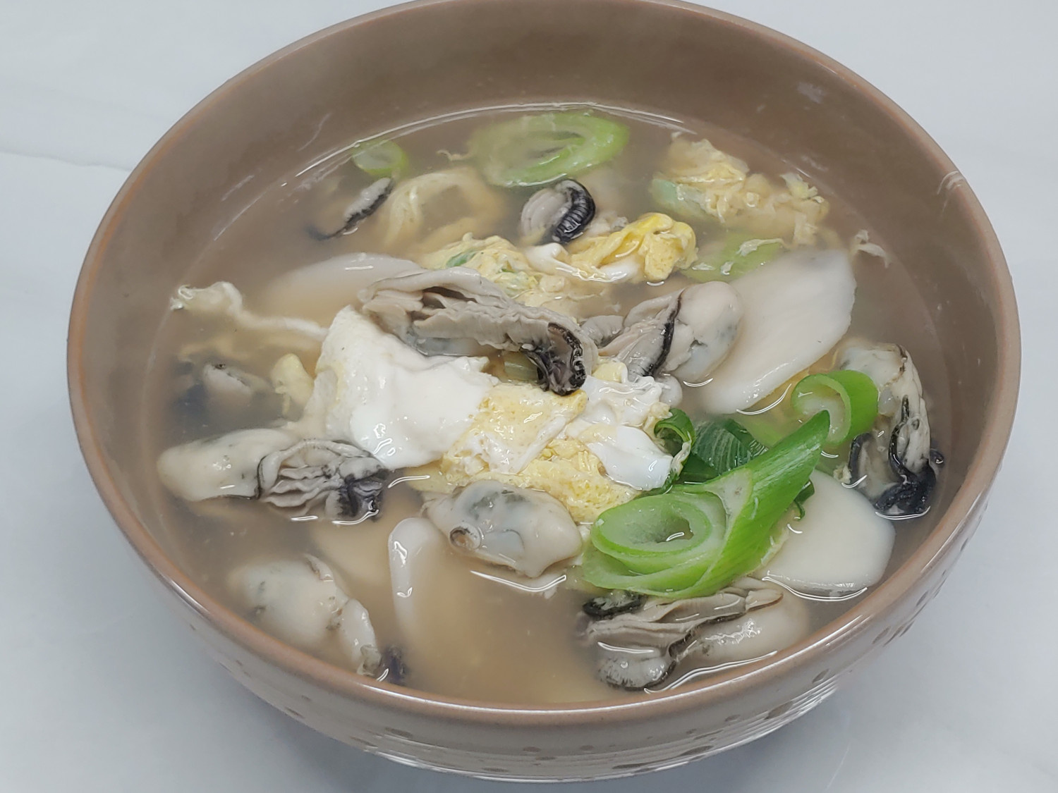 Nikmati Tteokguk yang kaya rasa dengan tambahan tahu sutra yang lembut dan tiram segar. Hidangan yang menghangatkan dan memuaskan!