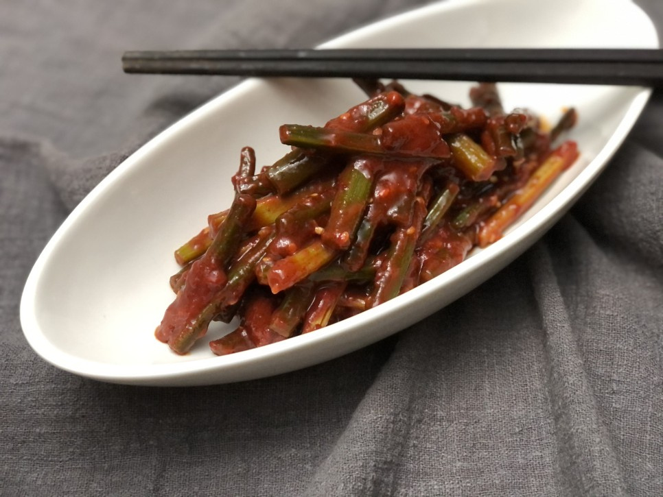 Saat merapikan kulkas, saya menemukan dua ikat batang bawang putih yang sudah lama tersimpan. Sejujurnya saya tidak ingat kapan membelinya, tapi ternyata masih cukup segar dan kokoh. Biasa terjadi saat merapikan kulkas, ada saja bahan makanan yang tersisa, dan setiap kali ada bahan yang tidak ingat, rasanya ingin menghela napas. ‘Dulu lebih baik saat belum ingat,’ pikir saya, dan tingkat kelelahan meningkat eksponensial dengan setiap bahan yang ditemukan. ‘Tidak apa-apa, tidak apa-apa… Saya suka batang bawang putih…’ saya menghibur diri sendiri. Akhirnya, saya memutuskan untuk mengubahnya menjadi lauk pauk yang lezat!