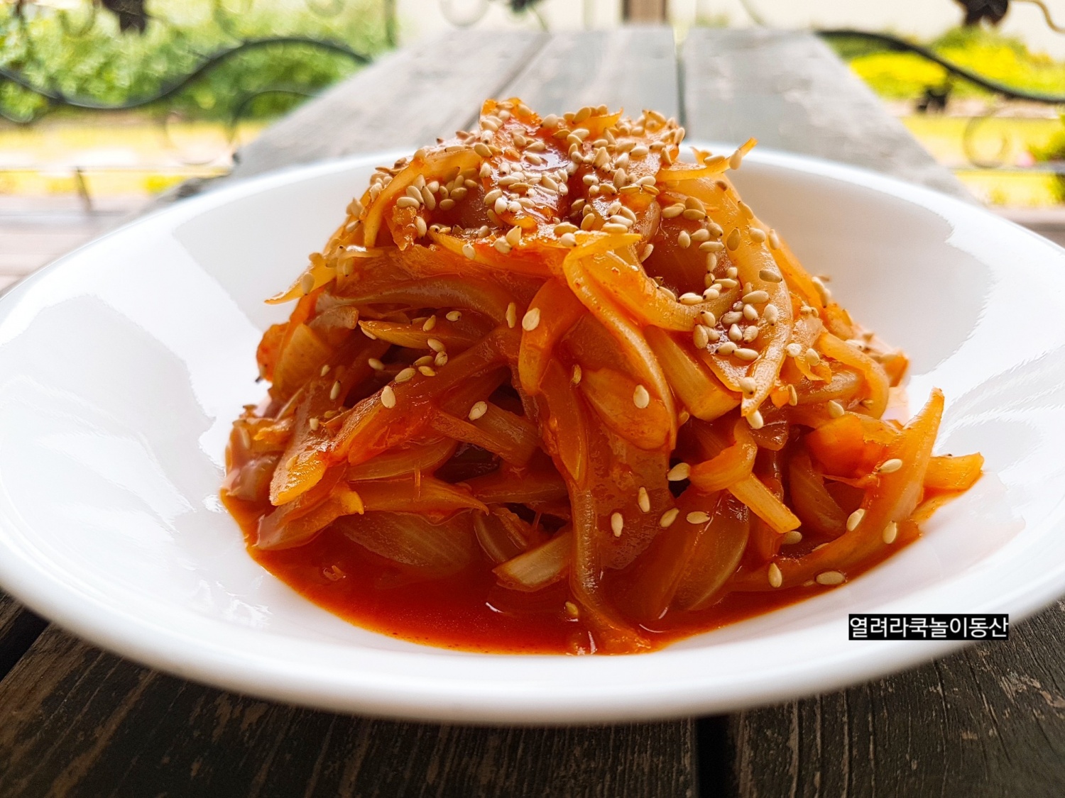 Selanjutnya, tambahkan 2 sendok makan gochujang (pasta cabai Korea). Aduk hingga merata agar gochujang tercampur sempurna dengan bawang bombay, pastikan tidak ada gumpalan. Lanjutkan menumis dengan api sedang-kecil selama 1-2 menit lagi, agar rasa pedas dan gurih dari gochujang meresap dalam ke dalam bawang bombay.