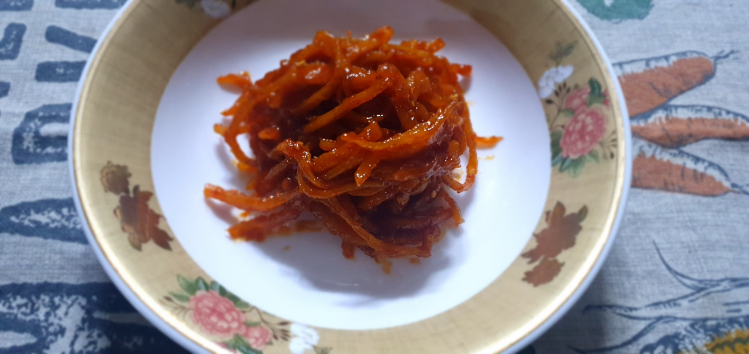 Setelah matang sempurna, sebarkan jinmi-chae ke piring besar atau talenan untuk sedikit mendingin. Ini mencegahnya menggumpal. Terakhir, taburkan 1 sdt biji wijen sangrai di atasnya untuk rasa gurih ekstra. Tumis cumi kering suwir pedas manis gochujang Anda yang lezat, hidangan pendamping yang sempurna, kini siap dinikmati!