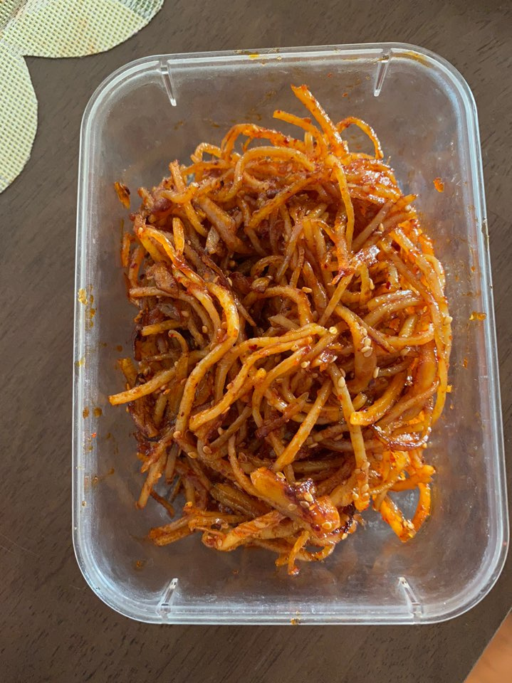 Tumis Cumi Kering Pedas Manis (Jinmichae Bokkeum)