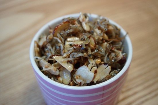 Pertama, siapkan ikan teri dan irisan kacang almond. Menggunakan ikan teri kecil (‘jan-myeolchi’) direkomendasikan karena mereka mempertahankan bentuknya lebih baik saat ditumis dan berpadu baik dengan almond. Jika menggunakan ikan teri yang lebih besar (‘gukmul-yong myeolchi’) yang ditujukan untuk kaldu, pastikan untuk membuang isi perutnya. Irisan kacang almond praktis untuk ditumis. Siapkan sekitar 150g ikan teri dan 100g irisan kacang almond.