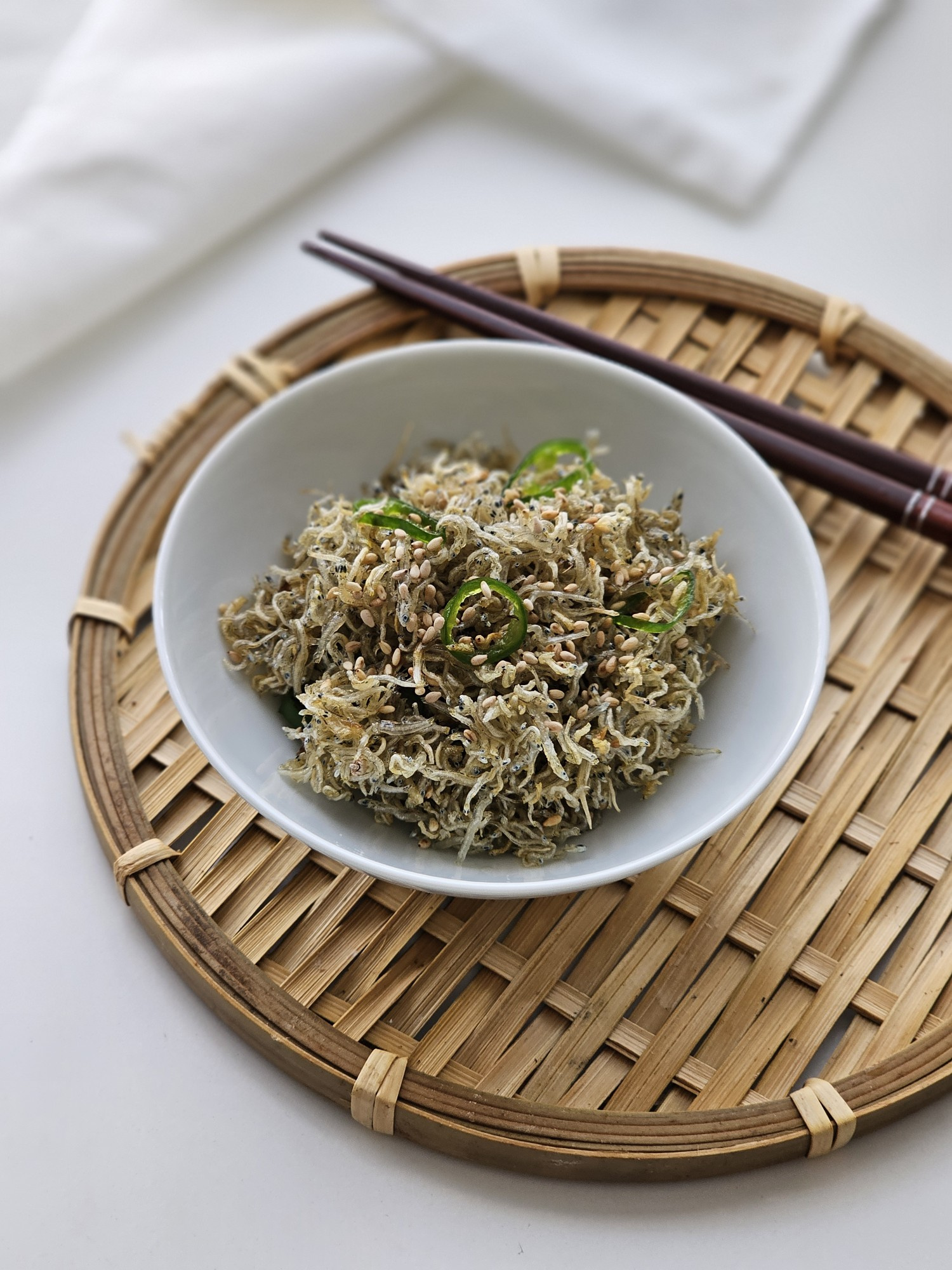 Pertama, pilih 200g ikan teri kecil yang rendah garam dan lembut, ideal untuk anak kecil. Sebaiknya buang kepala atau bagian yang keras.