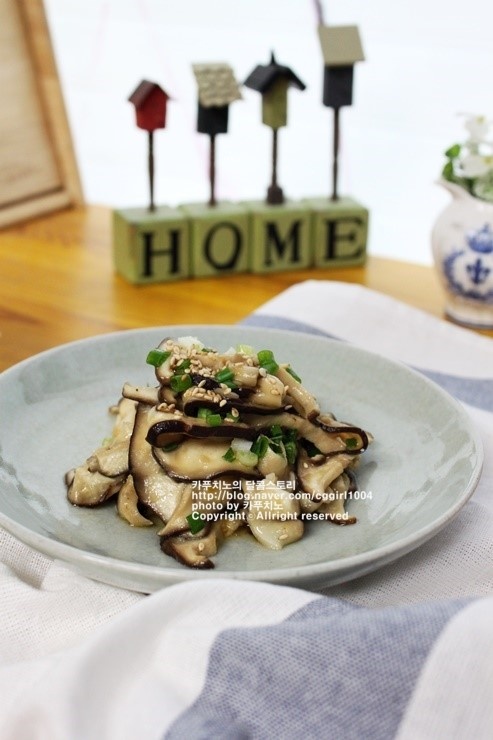 Cuci bersih jamur shiitake di bawah air mengalir untuk menghilangkan kotoran atau debu. Hati-hati jangan sampai merusak tudungnya, dan potong bagian batangnya yang keras. (Tips! Jangan buang batangnya; bisa digunakan untuk membuat kaldu atau ditambahkan ke dalam sup doenjang untuk rasa yang lebih kaya dan mendalam.)