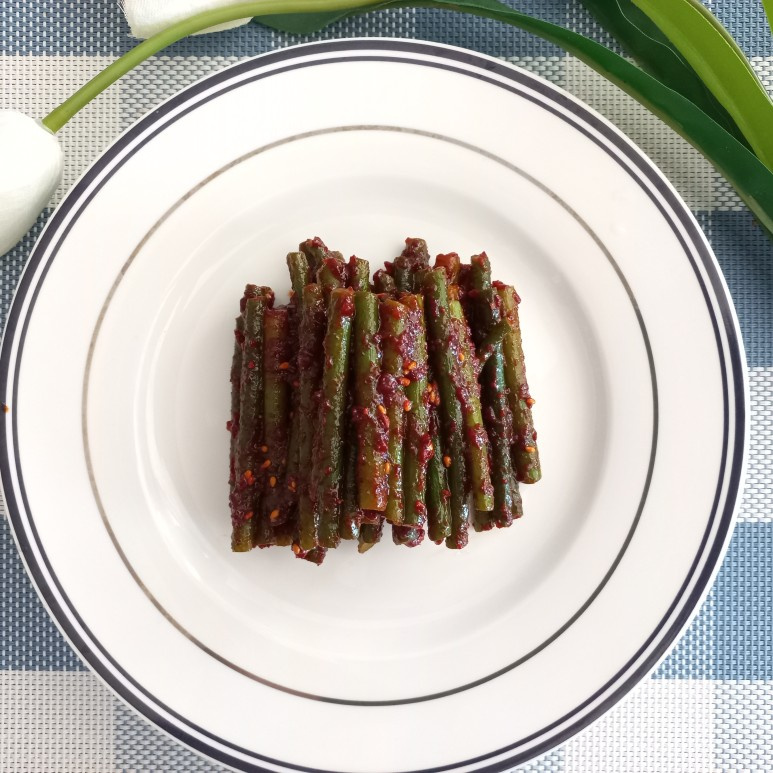 Salad rebung bawang putih gochujang Anda yang gurih, sedikit pahit, dan sangat pedas manis kini siap dinikmati! Nikmati kerenyahan yang memuaskan dan rasa yang kaya. Ini adalah lauk pendamping yang fantastis yang sangat cocok disajikan dengan nasi. Selamat menikmati!