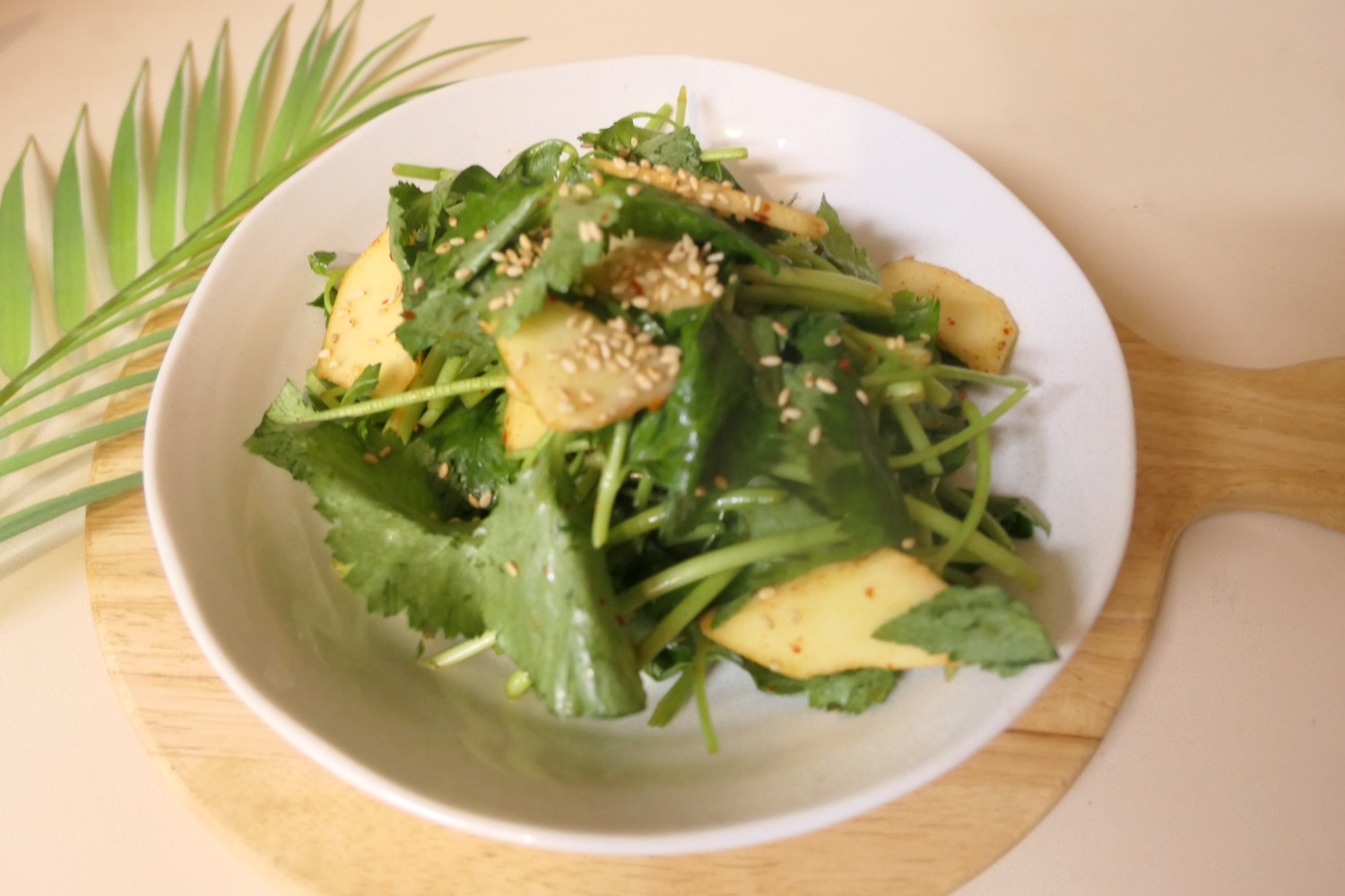Salad Rebung (Chamnamul) dan Apel yang Segar dan Cerah