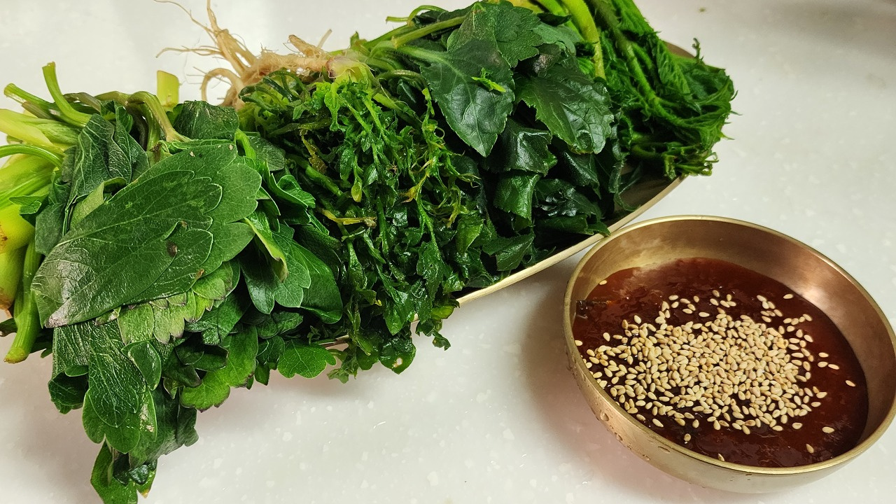 Masukkan sayuran liar yang sudah diperas ke dalam mangkuk. Tambahkan Chogochujang sesuai selera Anda dan aduk perlahan. Hindari mengaduk terlalu kuat karena bisa membuat sayuran menjadi lembek. Tata sayuran liar yang sudah dibumbui dengan indah di atas piring saji. Saus Chogochujang yang pedas dan manis meningkatkan aroma alami sayuran.