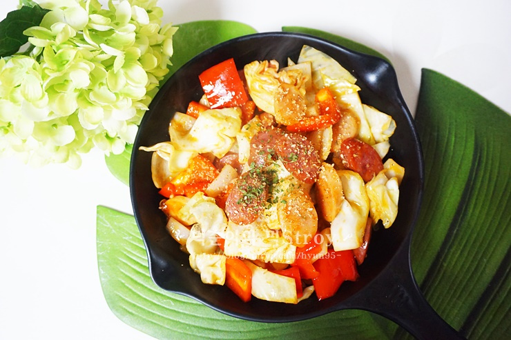 Setelah menumis sayuran sekitar satu menit, segera masukkan irisan sosis ke dalam wajan dan tumis bersama. Sosis adalah hidangan favorit yang serbaguna untuk anak-anak maupun orang dewasa, menambah cita rasa gurih yang lezat. Bahkan tanpa bumbu apa pun, sosis sudah enak. Tumis selama sekitar 2-3 menit hingga sosis sedikit kecoklatan.