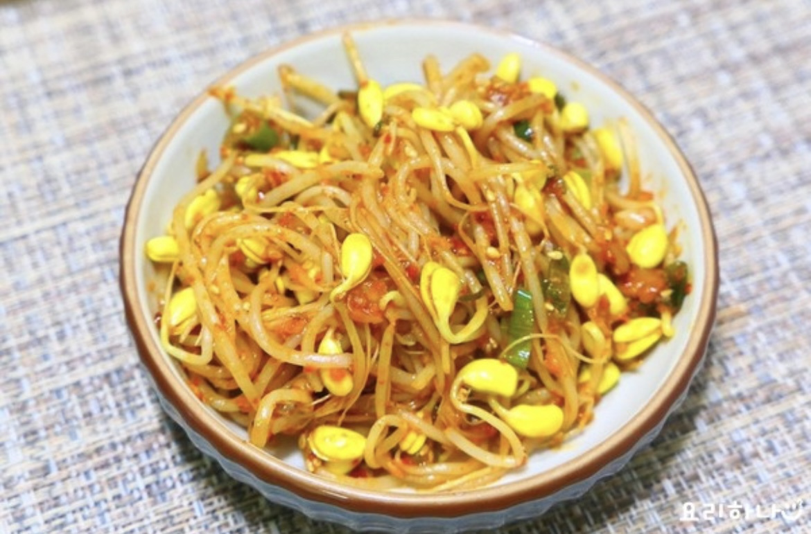 Sekarang, taburkan bumbu yang akan menambah rasa pada tumisan tauge Anda: bubuk cabai merah (1 sdm), kecap asin (1 sdm), bawang putih cincang (0.5 sdm), dan ‘Yeondu’ (cairan bumbu Korea, 1 sdm – jika tidak ada, Anda bisa menambahkan sedikit kecap asin lagi). Tumis semuanya bersama selama sekitar 5 menit, pastikan bumbu melapisi tauge secara merata. Anda akan melihat tauge mulai sedikit melunak setelah sekitar 5 menit.