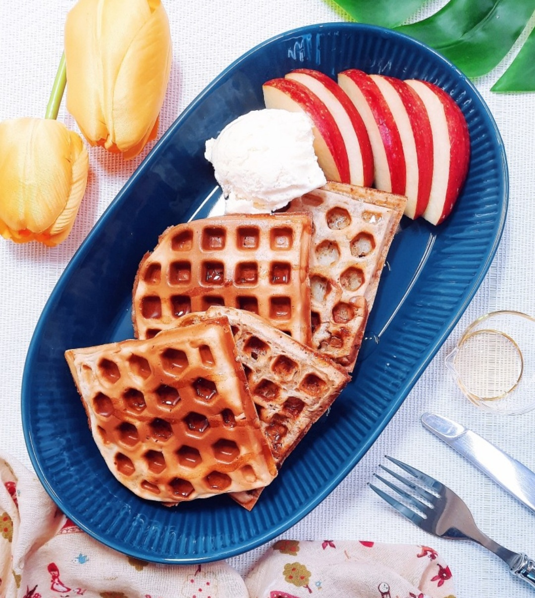 Hari ini, kami akan membuat wafel yang sangat lembut dan mengembang dengan menambahkan potongan apel ke dalam adonan tepung hotcake sederhana. Wafel ini menghasilkan tekstur yang luar biasa lembut dan empuk, berbeda dari adonan wafel tradisional. Teksturnya mengingatkan pada ‘Bungeoppang’ (roti berbentuk ikan) – renyah di luar namun sangat lembut di dalam. Setiap gigitan menawarkan sensasi unik dari kerenyahan yang diikuti oleh tekstur lembut dan berongga. Nikmati suguhan istimewa ini!