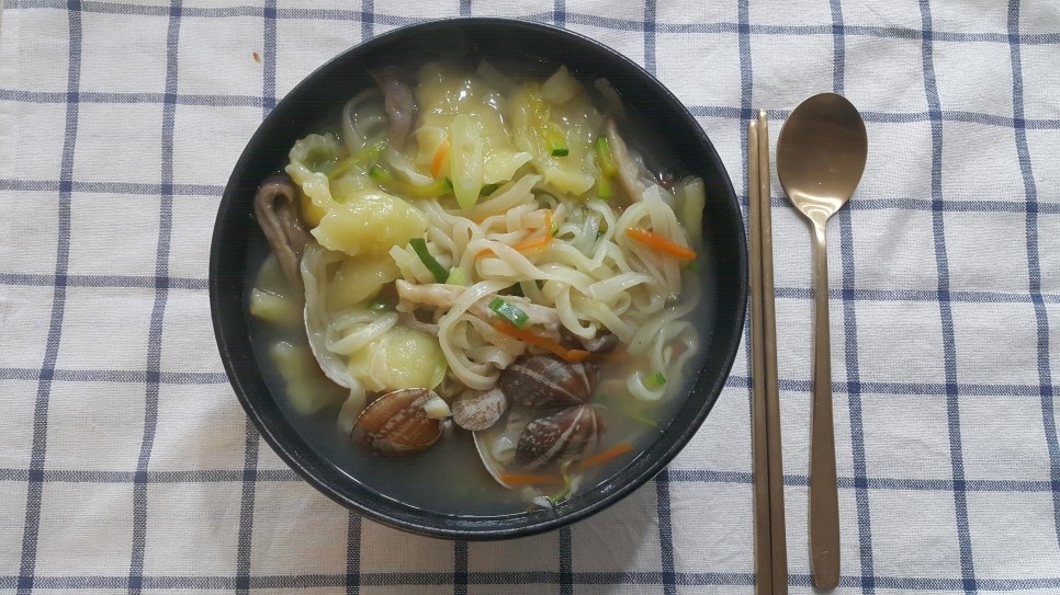ダイエット中の夫が朝食にあさりうどん(カルグクス)をリクエストしてくれました!うどんだけでは少し物足りないかと思い、小麦粉と片栗粉で手打ちのすいとん(スジェビ)の生地を作り、うどんと一緒に加えてみました。すると、うどんよりもすいとんの方が断然人気!そんな、家族みんなが夢中になる魔法のようなレシピをご紹介します。