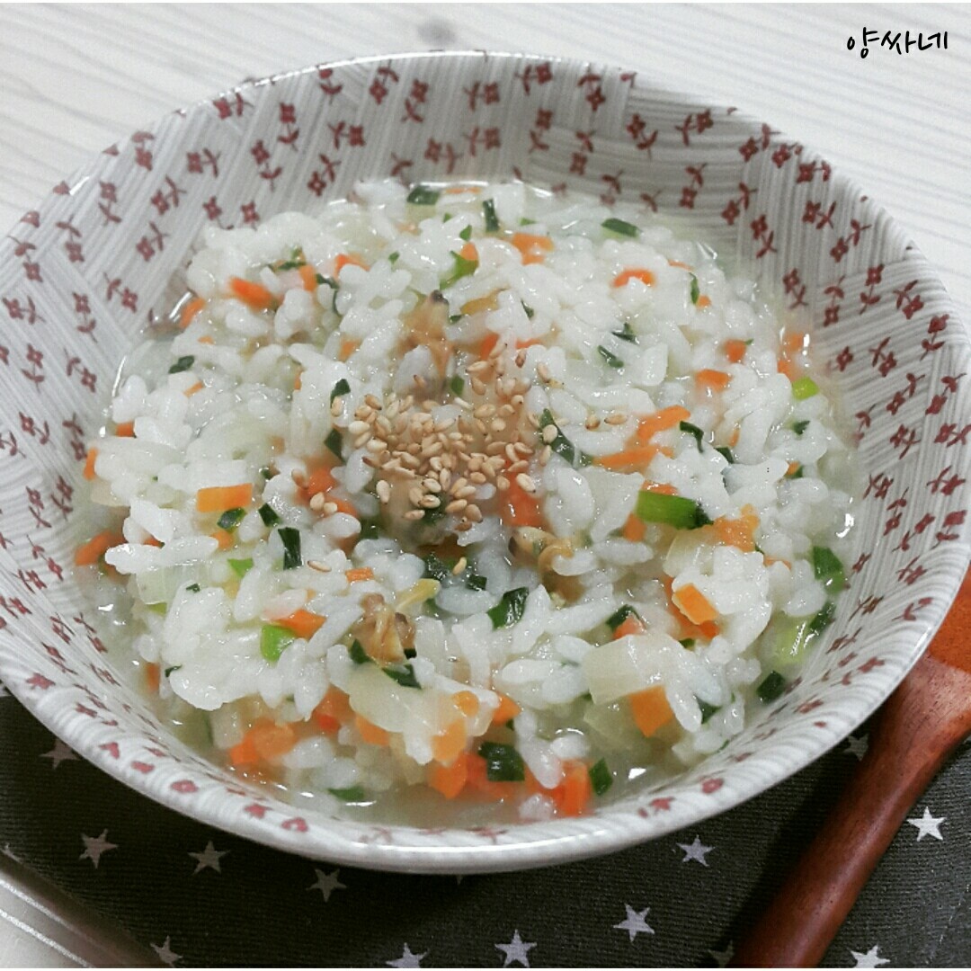 元気がない時、特別な栄養食が必要な時、貧血予防や傷の回復を助けるあさりと野菜のおかゆはいかがですか? 柔らかい食感と豊かな栄養が、疲れた体と心に活力を与えてくれます。特に、お年寄りや噛む力が弱い方のために、より柔らかく調理すると喜ばれます。