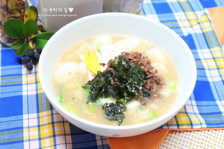 温かいトッククをお椀に盛り付け、あらかじめ準備しておいた薄焼き卵、炒めた牛ひき肉、そして細かくちぎった味付け海苔を彩りよく飾れば、本格的ないりこ出汁のトッククの完成です!キムチと一緒に美味しく召し上がってください。