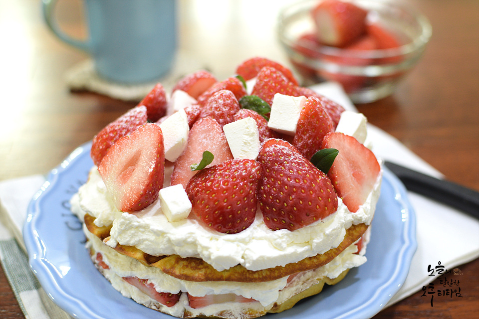 おうちで本格デザート! 딸기(いちご)ワッフル(ストロベリーワッフル)の作り方