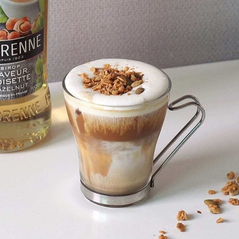 皆さん、こんにちは!今日は、グラノーラをトッピングした、リッチでクリーミーなヘーゼルナッツラテのレシピをご紹介します。おうちで簡単にカフェのような一杯が楽しめますよ。香ばしいヘーゼルナッツの香りと、なめらかなクリーム、そして濃厚なエスプレッソが織りなすハーモニーは、一日の疲れを癒してくれること間違いなし。手軽なのに特別な、カフェタイムをぜひお楽しみください!