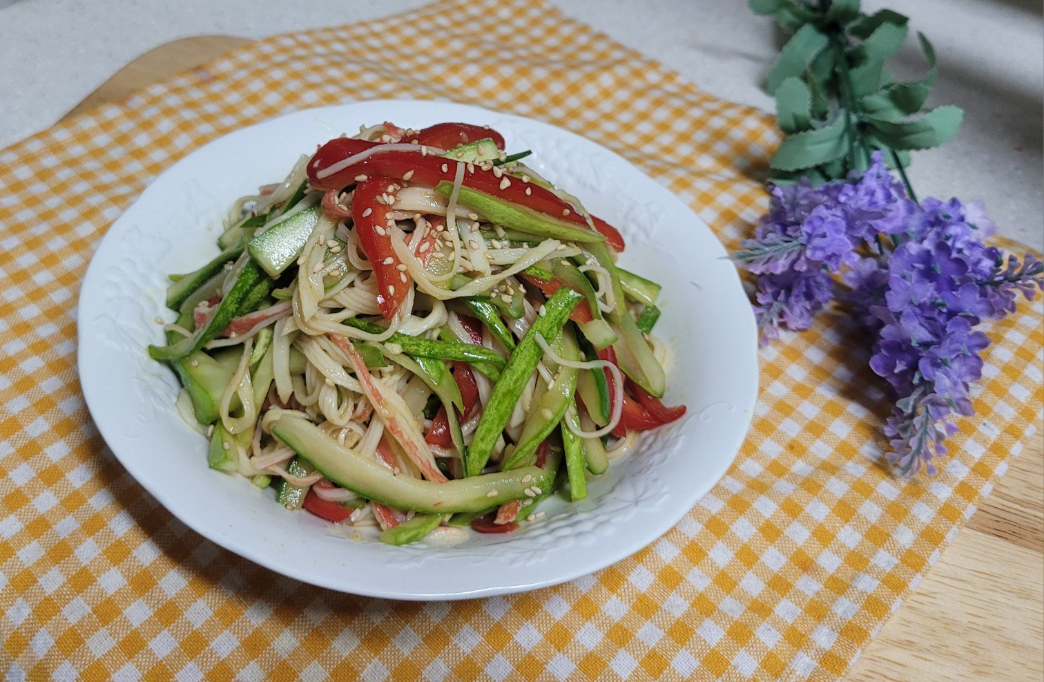 食欲をそそる、爽やかなきゅうりとカニカマの和え物