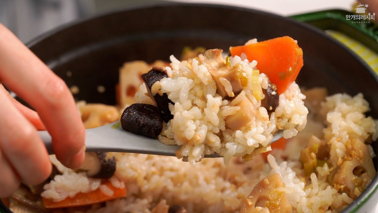 ヘルシーな食事がしたい時は、特別な材料がなくても、この本格的な炊き込みご飯を作ってみてください。しいたけの深い旨味と、レンコンのシャキシャキとした食感が絶妙に調和し、美味しさと栄養を両立させました。消化も良く、お腹も満たされる魔法のような炊き込みご飯、さあ始めましょう!