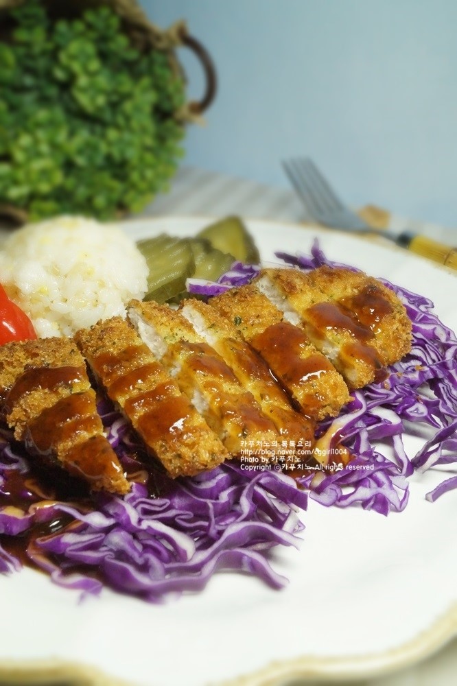 サクサクの衣をつけましょう。平たいお皿にパン粉1カップと乾燥パセリ大さじ1を入れ、よく混ぜ合わせます。パセリは彩りと香りをプラスしてくれます。卵液をつけた豚肉をこのパン粉の混合物に入れ、手で軽く押さえながら、パン粉が全体に、そしてしっかりとつくようにします。衣を厚めにすると、よりサクサクとした食感になります。