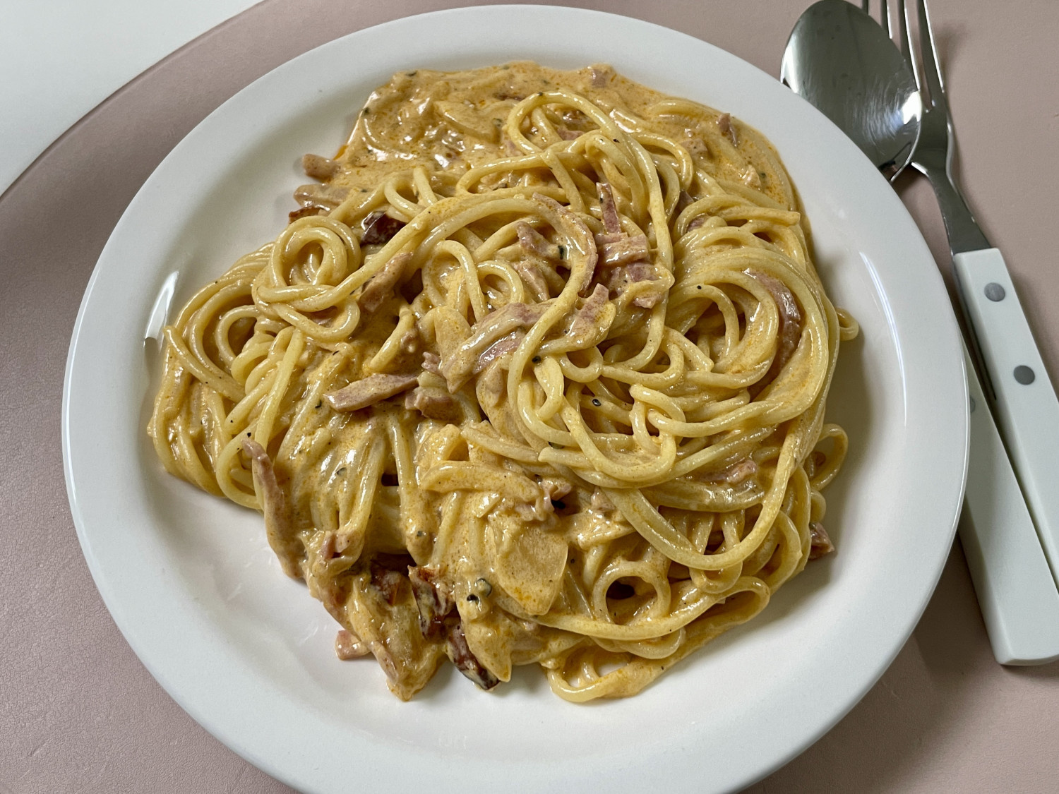 冷蔵庫にあるもので作れる!旨みたっぷりベーコンクリームチーズパスタ