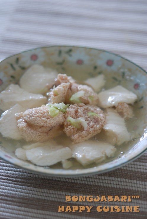 最後に、新鮮なねぎのみじん切り大さじ1(10〜15g)をたっぷりと加えて、香りを添えます。味見をして、もし薄ければ、エビの塩漬けの汁を少量加えて旨味と塩味を調整してください。エビの塩漬けがない場合は、韓国の醤油(국간장)や塩で味を調えても構いません。熱々をすぐに召し上がれ!
