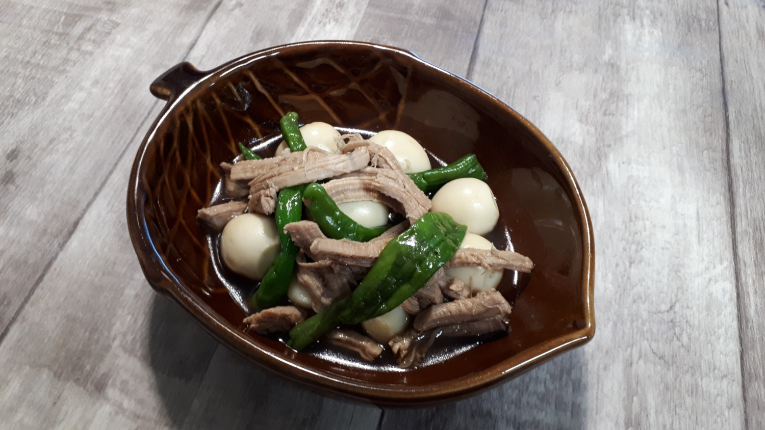 まず、うずらの卵は固ゆでにして殻をむき、準備しておきます。ししとうはヘタを取り、きれいに洗ってから、フォークで数カ所刺しておきます。こうすることで、味がしっかり染み込みやすくなります。