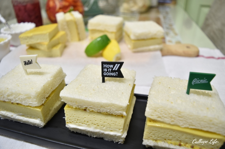 食パンの耳を切り落とし、パンの大きさに合わせて準備した卵フィリングのサイズに切り揃えます。パンの一方の面にはマスタードソースを、もう一方の面にはマヨネーズ・ヨーグルトソースを薄く塗ってください。ソースを塗ったパンの上に卵フィリングを乗せ、もう一枚のパンで挟めば、美味しい卵サンドイッチの完成です!(ヒント:最初はキャベツのピクルスやスライスチーズを入れずに作りましたが、後で追加してみたらとても美味しくなりました。次回はぜひ一緒に作ってみたいと思います。)