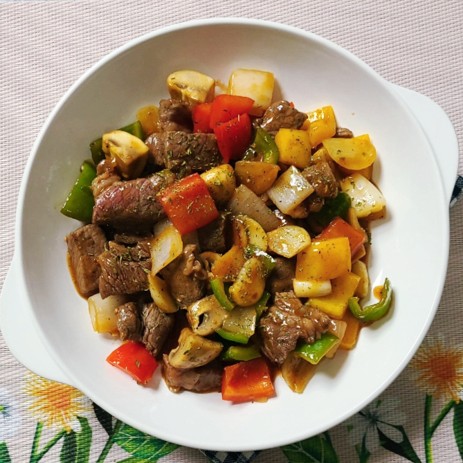 冷蔵庫に残った牛肉のロース肉を使い、色とりどりの新鮮な野菜と一緒に炒めて、見た目も華やかな牛肉のチョップステーキを作りましょう。特別な日にも、普段の食卓にも、豊かさと美味しさをプラスしてくれます。