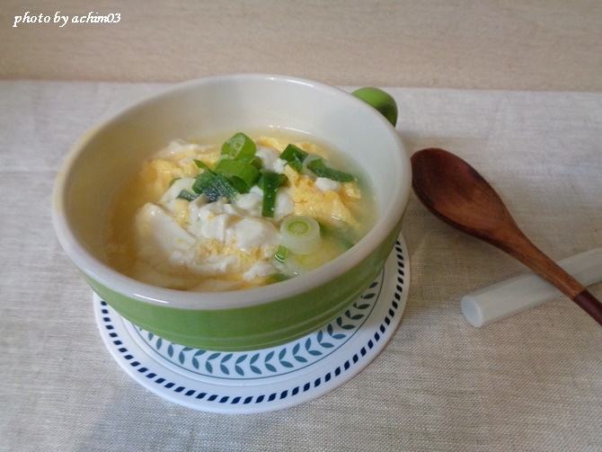 とろとろ絹ごし豆腐と卵のスープ:エビ味噌で旨味アップ!