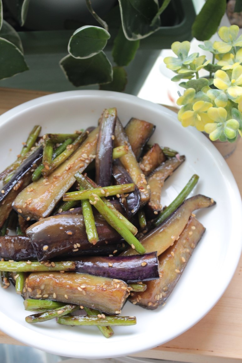 とろーり美味しい!ナスとニンニクの芽の炒め物