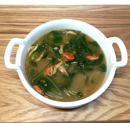 ふだん草と爽やかな赤エビを使った、風味豊かなデンジャンチゲの作り方