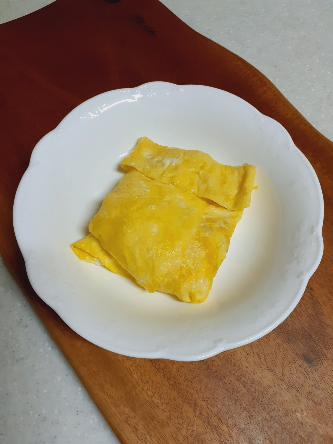熱したフライパンに、必要であれば少量のサラダ油を足し、溶きほぐした卵液を流し込みます。フライパンを軽く回して、卵液が薄く均一に広がるようにします。中火で端が固まり始めるまで待ちます。