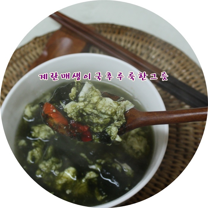 雑穀米と一緒に、この卵と海藻(マサンギ)のスープで栄養満点な一食をどうぞ! もし海藻(マサンギ)がない場合は、刻み海苔やあおさ海苔を使っても、とても美味しいスープになりますよ。