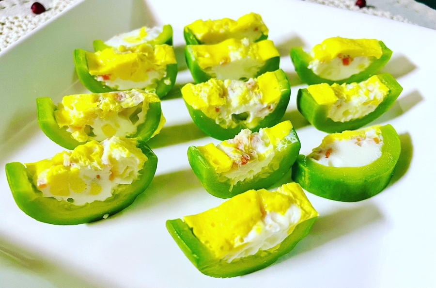 卵白がほぼ火が通ったら、ズッキーニの空いた部分に溶きほぐした卵黄を流し込みます。再び蓋をして、さらに5分ほど蒸します。卵黄が固まって火が通ったら、火を止めて蒸し器から取り出します。