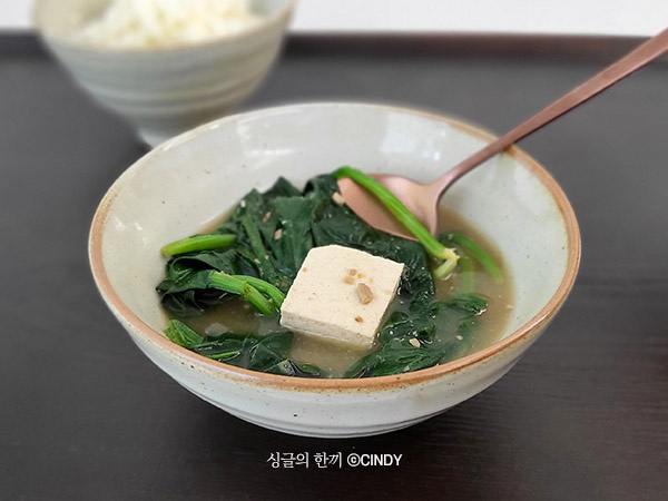 温かく爽やかなほうれん草とデンジャンのスープ、ご飯のお供にぴったり!
