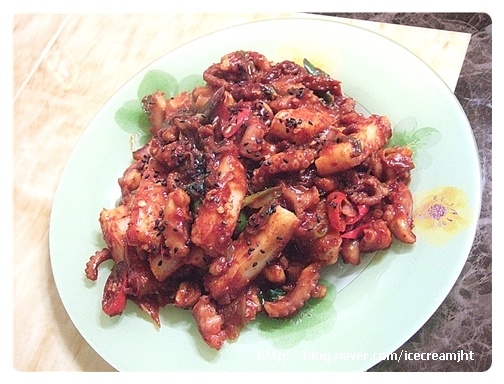 タコ炒めを美味しく作る秘訣は、何と言っても「強火で手早く炒めること」です!こうすることで、タコ特有の歯ごたえが程よく残り、ヤンニョムが焦げ付かずに、素材に旨味がしっかり移ります。また、フライパンに水分が出すぎるのを防ぎ、ヤンニョムが煮詰まってより濃厚で美味しいタコ炒めになります。お餅を加えることで、お餅にもヤンニョムが染み込み、噛むたびに美味しい風味が楽しめます。特に秋に獲れるタコは身が締まっていて、この時期に炒め物にすると格別です。このようにピリ辛に炒めれば、栄養満点で美味しい一品になります。今日はいつもよりさらに美味しく感じるタコ炒めで、楽しい食卓を演出してください!ご飯にそのまま混ぜて食べたり、冷たいビールと一緒に楽しむのも最高ですよ。