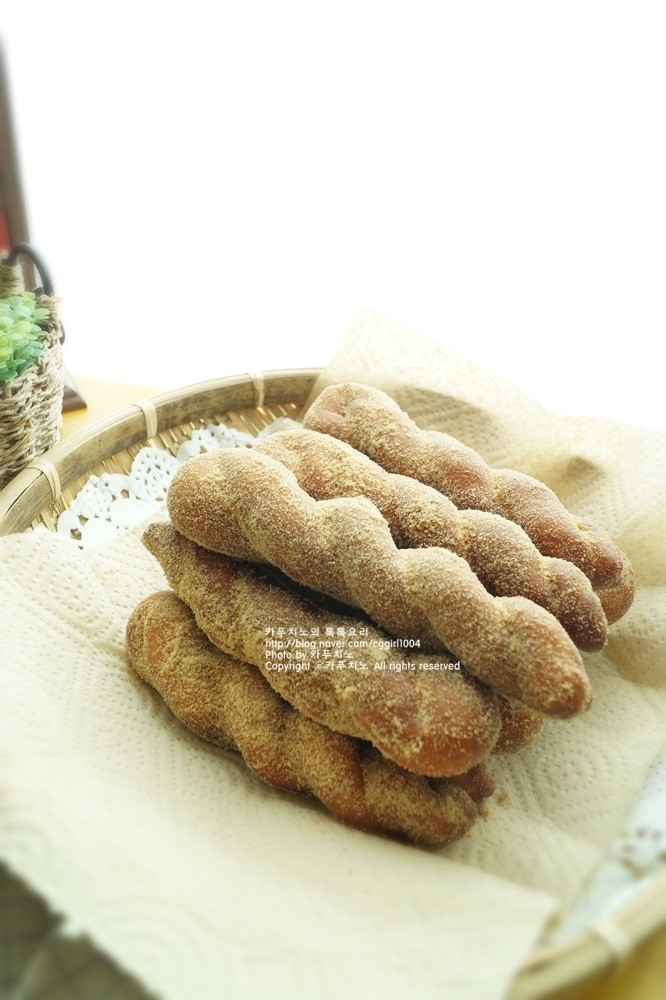 揚げたての米粉のねじりドーナツは、少し冷ましてからいただきます。お好みで、温かいうちにグラニュー糖(ムシュグシュ)をまぶすと、甘くて美味しいドーナツになります。最近よく作っているのですが、素朴で甘すぎないので、みんなに好評です。お子様のおやつにもぴったりなので、ぜひ作ってみてくださいね!