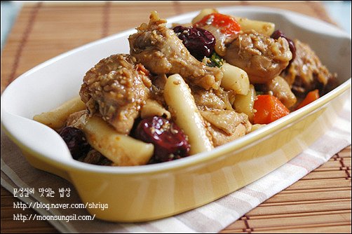韓国の家庭料理の定番、タッジョリム(鶏肉の甘辛煮)に、子供から大人まで大好きなトック(韓国餅)を加えました。煮詰まったタレが鶏肉にしっかりと染み込み、トックのもちもちとした食感がアクセントとなり、ご飯のおかずにも、お酒のおつまみにもぴったりな一品です。찜닭(チムタク)に春雨の代わりにトックを入れるように、このレシピでもトックの食感が鶏肉の柔らかさと絶妙に調和し、満足感のある味わいを生み出します。