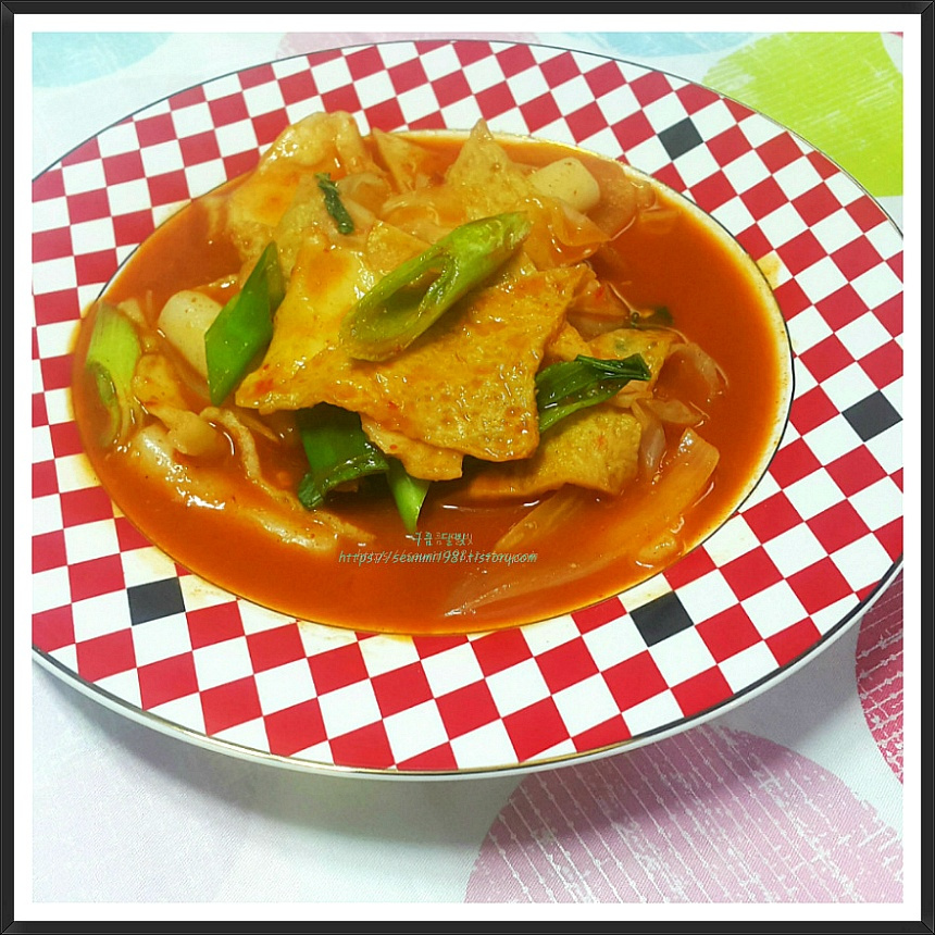 野菜が半分くらい火が通ったら、火を中火に弱めます。あらかじめ水で戻しておいたトッポッキ餅と、食べやすく切ったおでんを加えます。お餅やおでんが鍋底にくっつかないように、時々ヘラで混ぜるのを忘れないでくださいね。