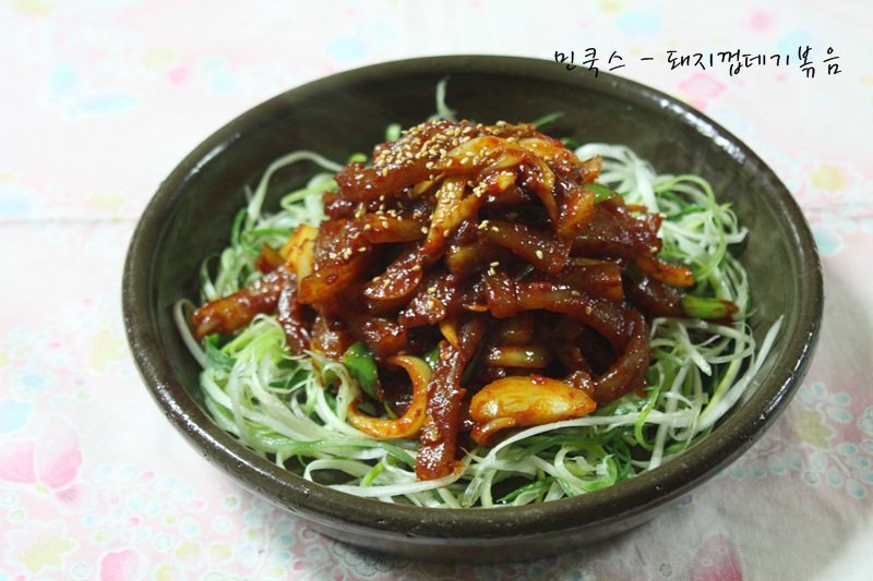 豚皮がある程度火が通ったら、切っておいた玉ねぎと青唐辛子を加えて一緒に炒めます。野菜がしんなりしたら、細切りにした長ねぎを加えて軽く炒めます。最後に、ごま油を回しかけ、白ごまをふりかけて完成です。キムチのように添えて食べても美味しいですよ。