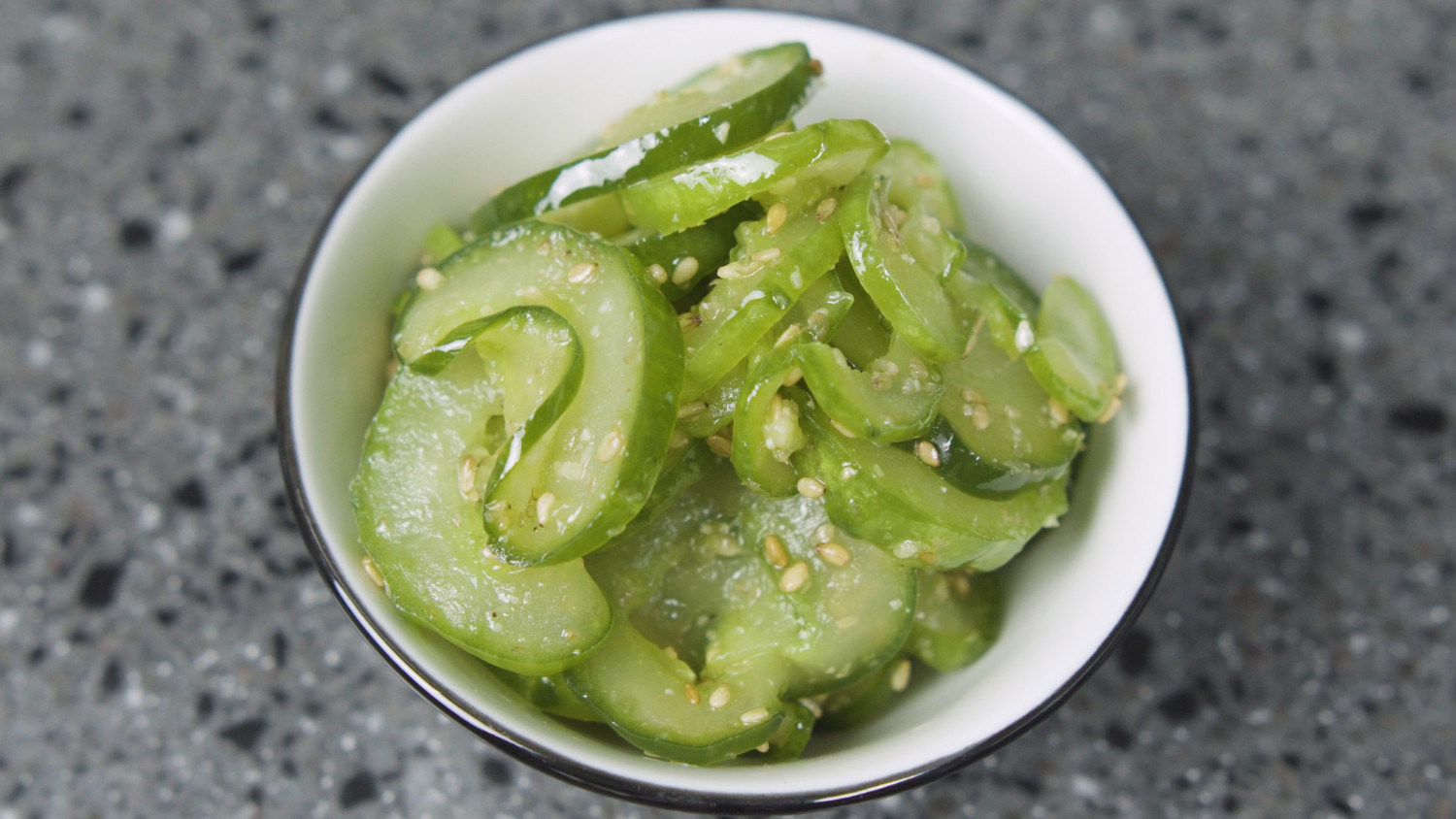 ごまを加える際は、いりごまをそのまま使うよりも、軽くすり鉢ですり潰したり、ミルで粉末状にしたりしてから加えると、きゅうりによく絡み、香ばしさが増してより一層美味しくなります。すぐに食べる場合は、いりごまでも十分美味しいです。