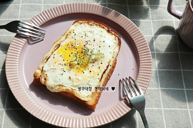 卵黄を崩した卵の上に、こしょうを軽く振りかけて風味を加え、塩はごく少量だけ振りかけて卵の味を少しだけ引き立てます。これで準備は完了です!電子レンジに入れ、約2分間加熱します。電子レンジの機種によって加熱時間が異なりますので、卵の固まり具合を見ながら時間を調整してください。(※電子レンジで加熱すると、パンが少ししっとりとする場合があります。)