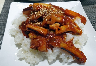 食欲をそそるイカの甘辛炒め丼を家で簡単に作る