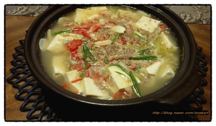 あっさりとしてクリーミーな豆腐と、旨味たっぷりのエビの塩辛(セウジョッ)が織りなす絶妙なハーモニー!澄んだ上品なスープは、ご飯が何杯でも進む魔法のような美味しさです。エビの塩辛で味付けすることで、タンパク質やカルシウムが補給できるだけでなく、消化の良いアルカリ性の豆腐をたっぷり楽しめるので栄養満点。複雑な手順なしで簡単に作れるので、忙しい日でも満足感のある一品になります。ボコボコと煮える温かい豆腐チゲで、食卓を豊かに彩りましょう!